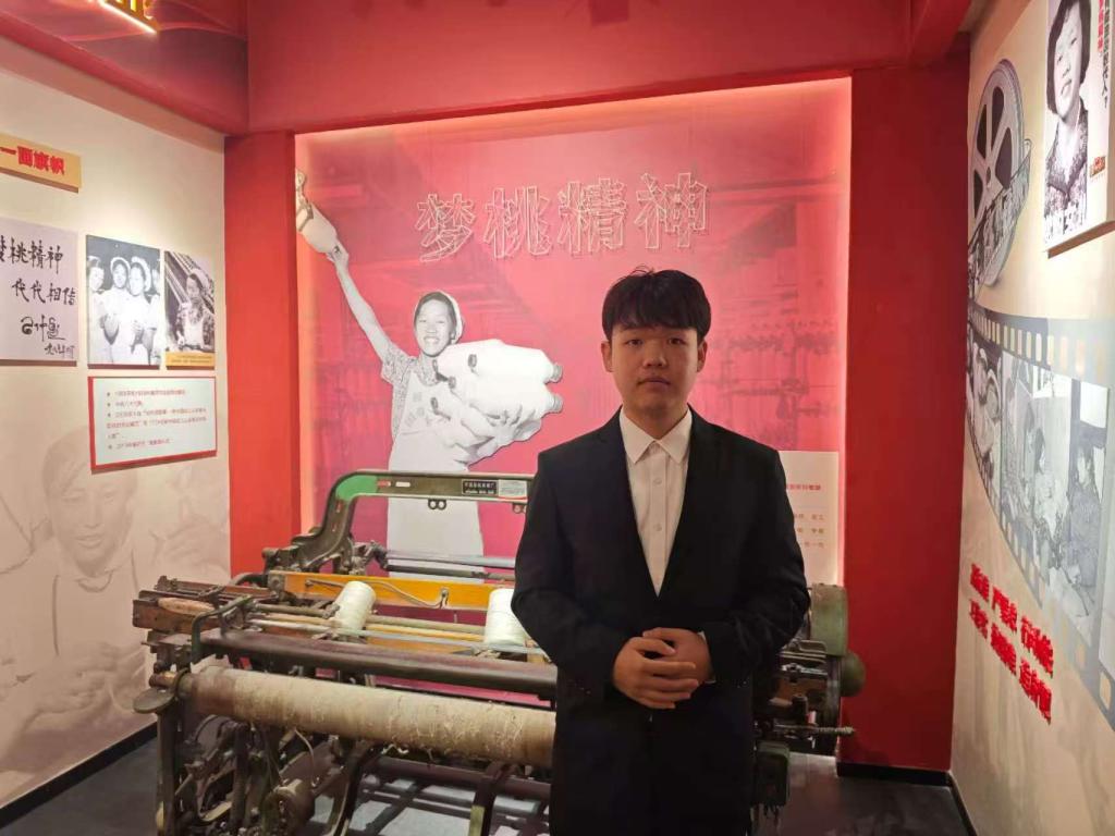 展厅内,耕耘社成员赵延泽立足赵梦桃事迹展区,带来一场生动的“劳模馆里的思政课”。他详细讲述赵梦桃同志扎根纺织岗位、带徒传技、争创一流的先进事迹,深刻解读爱岗敬业、协作奉献的“梦桃精神”,让劳动的价值与担当在沉浸式讲解中直抵人心,引导人们读懂劳动是成就梦想的唯一路径。