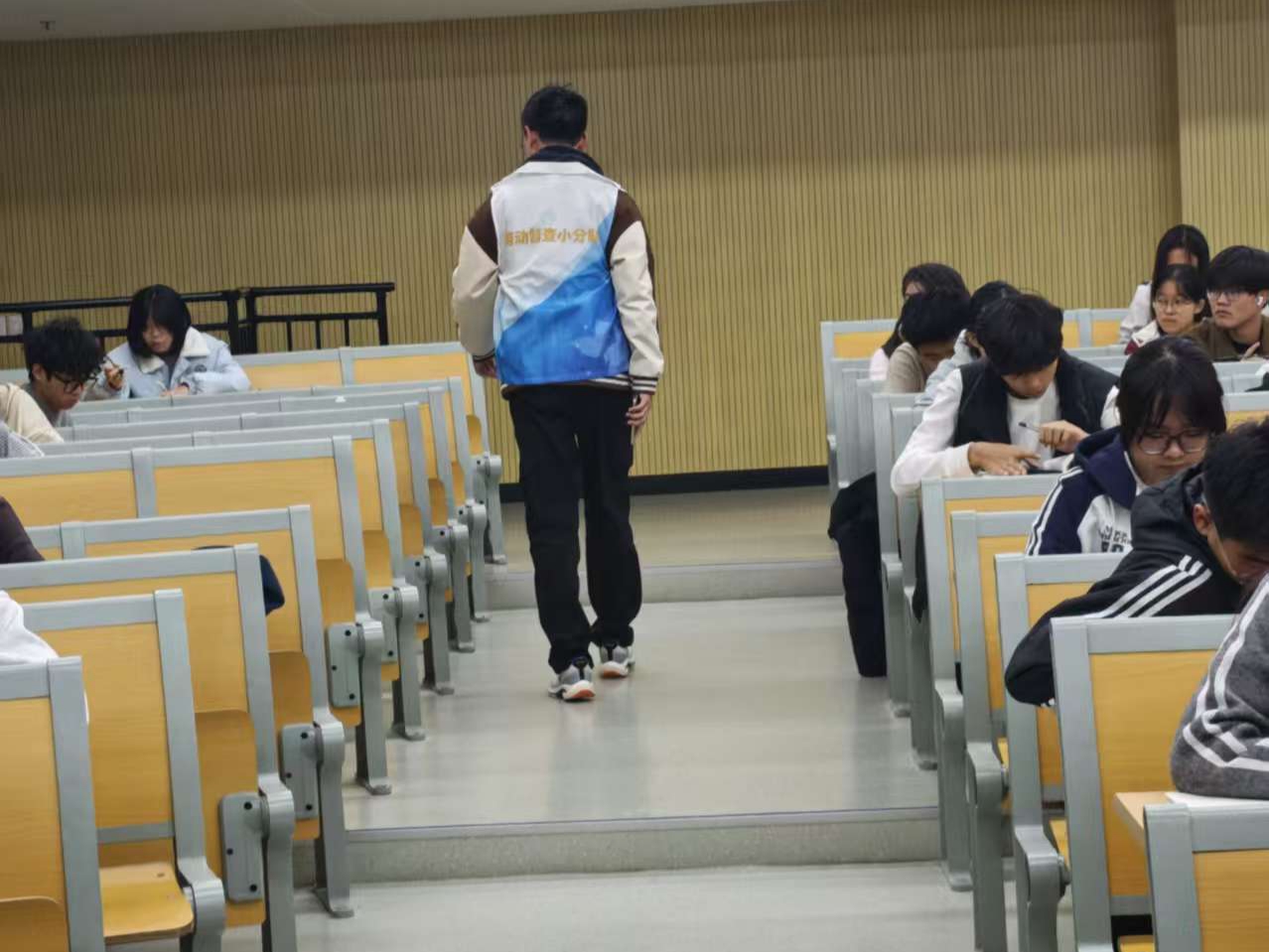 自10月14日起至10月30日,耕耘社督察组每周固定于周二、周四19:30-20:30,组织社员深入2号、3号、7号、8号等教学楼的晚自习教室,累计投入50余人次参与督察工作。社员们始终以“劳动实践者”身份投身其中,不仅对照校园环境卫生标准,对桌椅摆放、地面清洁度进行全方位排查,更主动承担劳动任务——亲手将歪斜的桌椅逐排归位,弯腰清理地面残留的塑料瓶与纸屑。