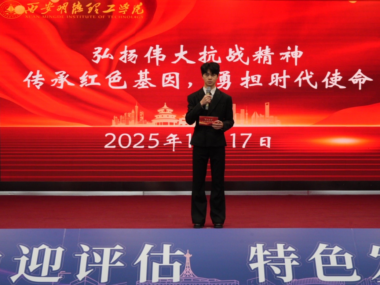 11月17日晚,我校建德楼203报告厅灯火通明、掌声阵阵。由“星火燎原”大学生理论宣讲团与戎耀国防教育中心联合主办,国旗护卫队、求是知行社共同协办的“传承红色基因,勇担时代使命”——弘扬伟大抗战精神主题宣讲活动在此圆满举行。六位宣讲人通过理论阐释、史实重现等多元形式,构建了一场跨越时空的精神对话,使红色基因深植于青年心灵之中。三百余名学生齐聚现场,共同回顾抗战峥嵘岁月,深切体悟精神传承的时代意义。值此中国人民抗日战争暨世界反法西斯战争胜利八十周年的重要历史时刻,本次活动为青年学子提供了汲取奋进力量、强化使命担当的宝贵契机。活动由“星火燎原”大学生理论宣讲团成员吕欣竹主持。