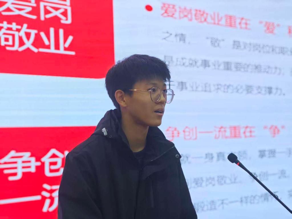 分享环节中,耕耘社郭安琪同学以“中国现代会计之父”潘序伦为核心,分享其“立信乃会计之本”的职业理念,诠释会计专业诚信底线与劳模精神的契合;耕耘社李泽旭同学聚焦通信领域技术攻坚劳模,讲述李杰等深耕一线、服务民生的奋斗故事;耕耘社邓佳同学分享何波等机械能源领域匠心劳模事迹,展现出精益求精的匠心与敢闯敢试的创新精神;耕耘社吴新同学解读审计行业标杆的“爱岗敬业守底线、精业创新破难题”品质,为专业学习提供启示;德法同行社陈昭明同学以李子柒为核心,结合“非遗+动画”“VR+文化传承”案例,诠释数字媒体艺术专业“专注创作、文化赋能”的劳模精神。
