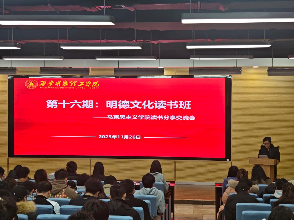 2025年11月26日,马克思主义学院第十六期“明德文化读书班”暨11月读书交流分享活动在建德楼201顺利举办。本次活动特邀豆阿敏、刘梦婷、武美妤、张剑蓉四位思政课教师担任分享嘉宾,她们携经典著作与200余名学子共展开一场深度思想对话,引领大家沉浸式感受书籍的力量与文化的魅力。