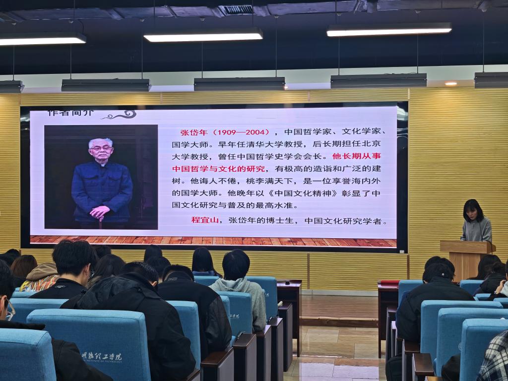 武美妤老师带来张岱年与程宜山合著的《中国文化精神》一书。武老师指出张岱年以马克思主义为指引,提出“文化综合创新论”。此书不仅是专业的文化研究范本,也是通俗的国民文化通识读本。在文本解读中,武老师强调本书既有对理性人文微光的探寻、四大发明巧思的品读、诗词小说风华的体悟、千年政治智慧的汲取,更有以“刚健有为”立骨、“和与中”“天人协调”润色的文化精神内核,她勉励广大青年学生要继承中华优秀传统文化,在传承中创新,让经典文化在新时代焕发生机。