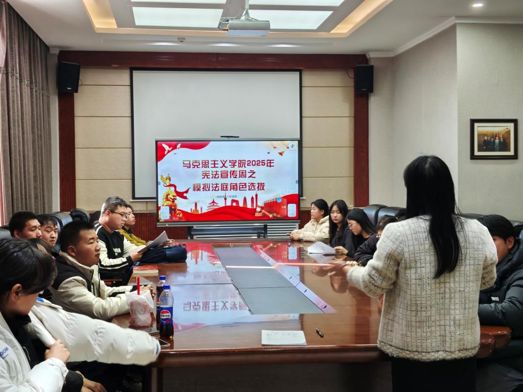 在宪法宣传周来临之际,11月28日中午12:30,我校模拟法庭活动的选角工作在图书馆203会议室有序进行。本次活动由马克思主义学院的樊静、王婉菲两位老师指导完成,德法同行社、耕耘社、邂逅经典读书会成员积极参与。同学们怀着对法律实践的热情和对角色演绎的探索欲望,踊跃报名参与不同角色的选拔,共同开启了一场沉浸式的法律实践体验。