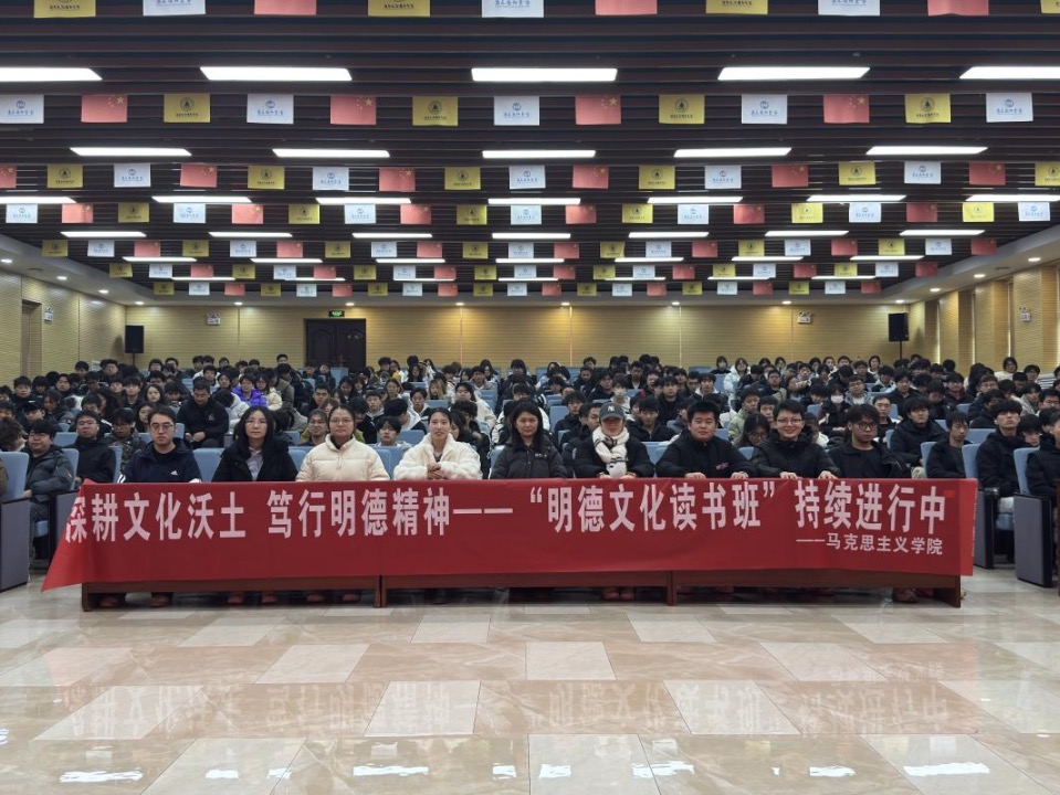 活动最后,主持人折娇同学为本期读书班作总结发言。此次活动中,三位老师的深入讲解和同学们的踊跃互动,帮助在座学子从经典著作中汲取了丰厚的精神滋养,深化了对马克思主义理论、人生哲学与新时代文化思想的认识。全体同学应以本次活动为起点,持续培养爱读书、善读书的良好习惯,在阅读中沉淀思想、提升素养,共同为“书香明德”校园文化注入青春力量。活动在热烈的掌声中落下帷幕,而阅读之旅未有穷期,思想的对话仍将在探索与求知中延续生长。