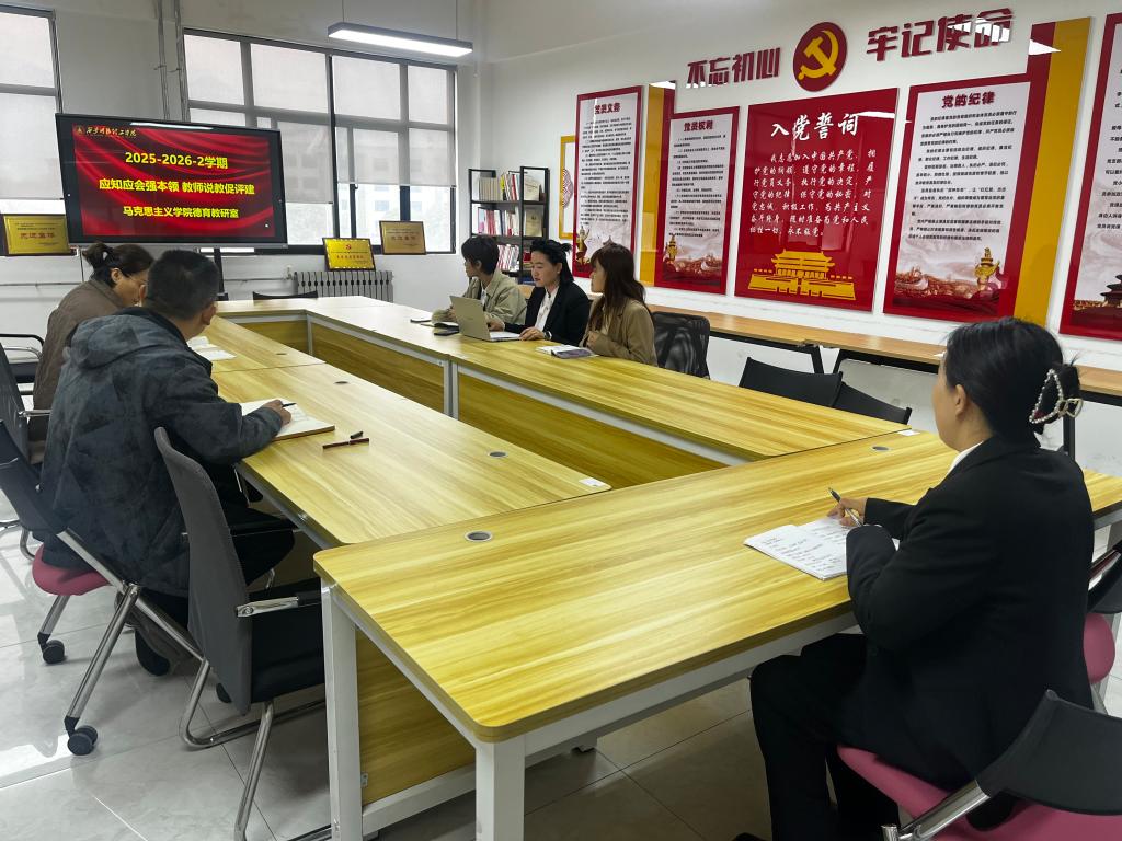 为深入贯彻落实学校迎评促建工作精神,进一步提升教师教育教学能力,夯实迎评工作基础,4月8日,德育教研室组织全体教师召开“应知应会强本领 教师说教学促评建”专题会议。会议由教研室主任樊静主持,全体教师参加。会议围绕评估指标学习、教学汇报与研讨等内容展开,旨在统一思想、凝聚共识,以评促改、以评促建,全面提升教学质量。