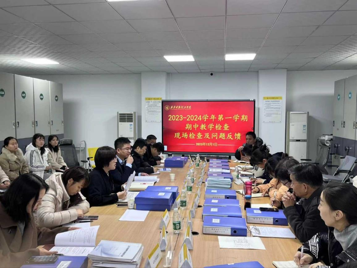 检查组成员在听取了学院教学情况汇报后,以《2023-2024 学年第一学期期中教学专项检查工作指标体系》和《2023-2024学年第一学期期中教学检查随机抽检清单教案抽检清单》为依,通过“查、看、评”等形式,对教风学风建设、教学质量建设、规章制度建设、实验室建设等教学常规项目进行了全方位、多角度的查,在肯定学院相关工作的同时,也存在问题进行了梳理归类和细致反馈,并提出可行性整改建议。