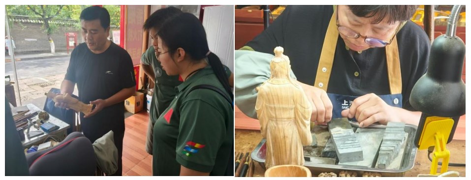 7月23日,西安明德理工学院“寻根圣城 薪火相传”暑期社会实践队赴曲阜“御书房”,拜访楷木雕刻孔门第五代传人孔繁彪老师。刀锋起落间,千年楷木金屑纷扬,指尖触及的,不仅是温润木理,更是穿越时空、流淌不息的华夏匠魂与儒家哲思。
