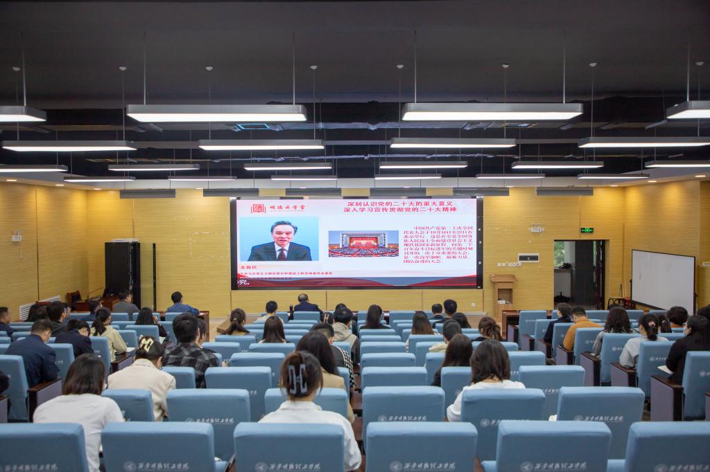 5月4日上午,学校学习贯彻习近平新时代中国特色社会主义思想主题教育读书班第二场专题辅导报告会在建德楼报告厅举行。报告会收看了中央马克思主义理论研究和建设工程咨询委员会委员、中央党史研究室副主任龙新民所作的《深刻认识党的二十大的重大意义深入学习贯彻党的二十大精神》辅导报告视频。