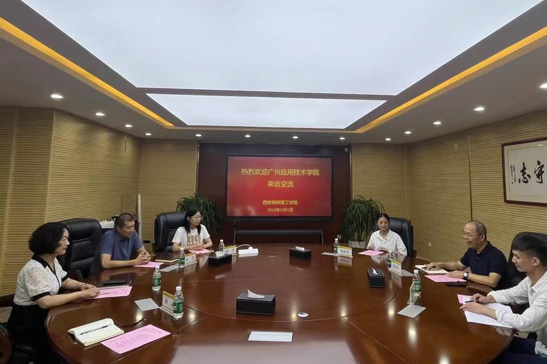 2024年9月9日下午,广州应用技术学院科研处处长陈学年一行三人访问我校进行考察交流。科技处副处长雷娟、校企合作管理中心副主任崔岩在明志楼南517会议室接待来访客人,科技处张莹和耿爽参会。