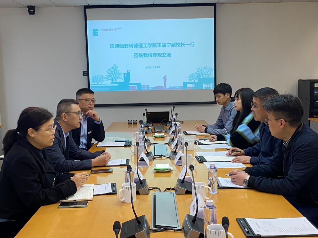 5月9日下午,我校副校长王斌宁,资产管理处处长李琨,智慧校园警务处处长宋敏纲等6人一行赴西安欧亚学院调研学习,交流校园环境建设、资产管理、后勤服务管理等工作。