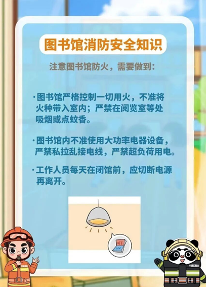 图书馆是新生自习查资料的高频地,书籍密集、环境安静,请务必提前掌握消防规则: