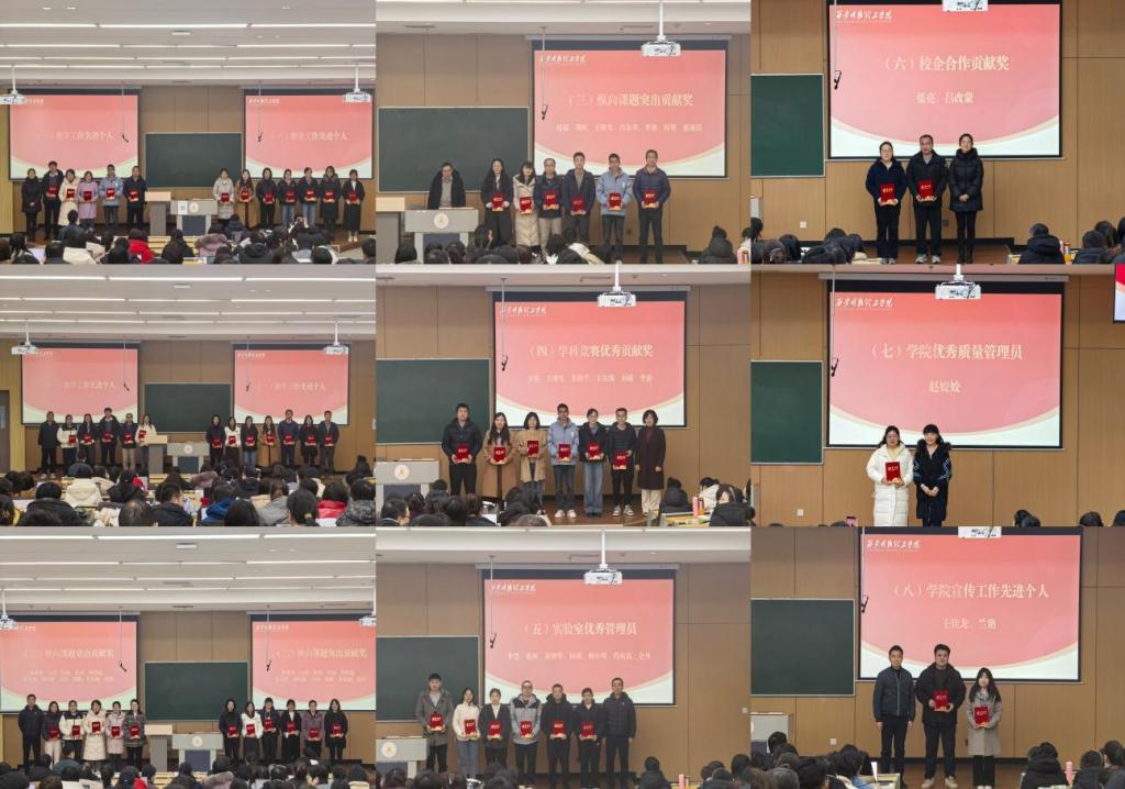 会议还对2025年度学院先进个人进行了表彰。院领导及各级名师为获奖教师颁发荣誉证书。本次表彰共设教学先进个人、横向纵向课题突出贡献奖、学科竞赛优秀贡献奖、实验室优秀管理员、校企合作贡献奖、学院优秀质量管理员、宣传工作先进个人等8个奖项,累计表彰67人次,以榜样引领担当、以荣誉激发干劲,营造比学赶超、争先创优的浓厚氛围。