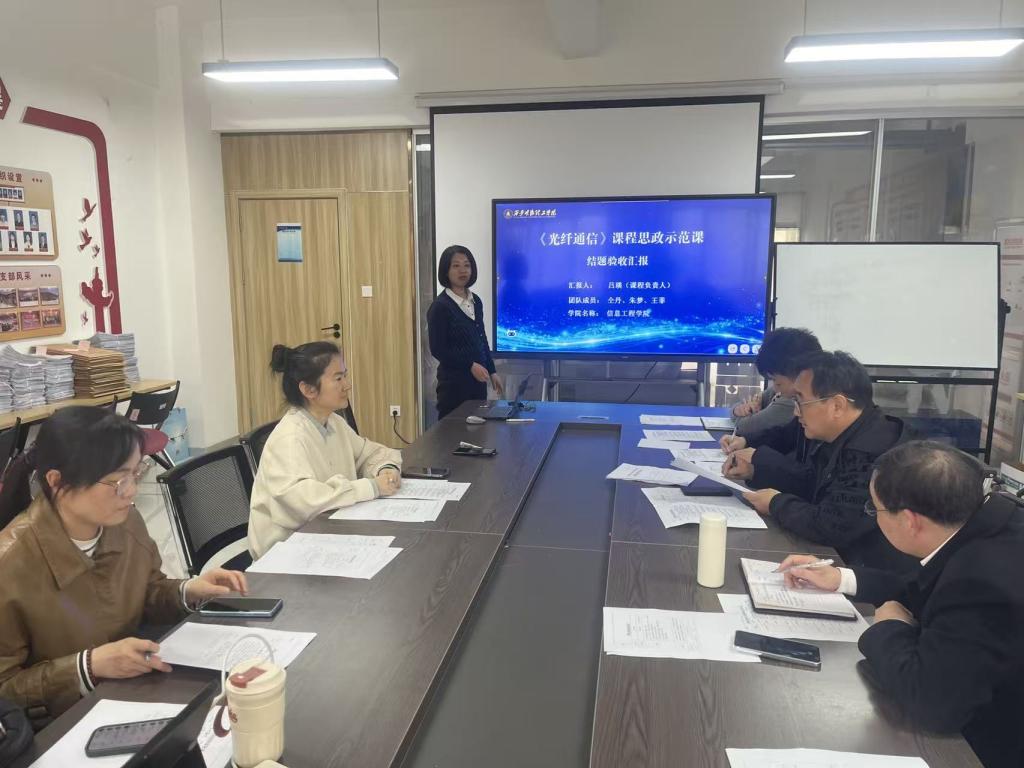 吕瑛老师则从课程基本情况、建设情况等方面展开汇报。《光纤通信》作为基金工程专业专业课,面向大三学生开设,共36学时、2个学分,紧扣学校高素质应用型人才培养定位,以“纤”动未来,光“耀”中华为建设主题,遵循“以学生为根,以育人为本”的理念。课程团队由吕瑛老师牵头,师资结构合理、成果丰硕,团队成员在教学比赛、课题研究、学生竞赛指导等方面表现突出。教学改革方面,课程构建了知识、能力、素养三位一体的目标体系,采用“理论+实践”双驱动模式,创新线上线下混合式教学方法,建成包含30个思政案例的案例库及丰富的线上资源,将思政元素全面融入教学全过程与考核体系。目前学生评教分数均在90分以上,同行评价良好,学生素养显著提升,课程形成了以技术发展、国家需求、职业责任为主线的鲜明特色,未来将重点推进思政案例库更新、校外思政基地建设、AI技术融入等工作。