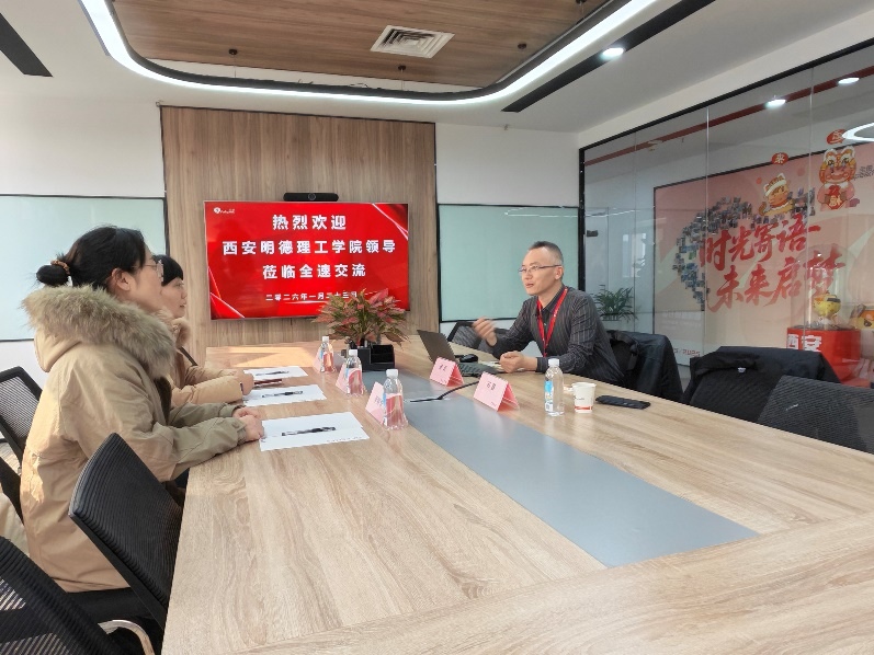 为精准对接数字经济产业需求,深化产教融合,拓宽毕业生就业渠道,2026年1月23日下午,信息工程学院办公室主任尹莹、电子信息工程专业负责人李颖华一行,前往西安全速教育科技有限公司开展访企拓岗专项活动,双方就人才培养、校企合作路径等事宜深入洽谈,筑牢协同育人基础。