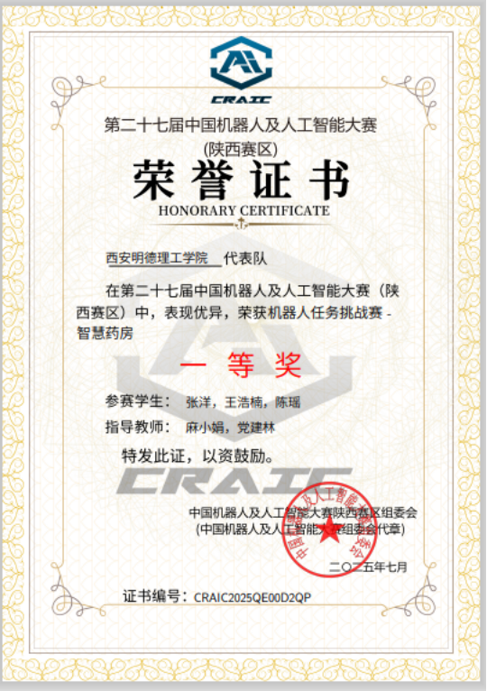 近三年,信息工程学院的学生代表学校参加“国际先进机器人及仿真技术大赛”、“中国机器人及人工智能大赛陕西赛区”、“中国机器人及人工智能大赛全国总决赛”和“全国机器人锦标赛”等多个比赛的多种赛项,荣获100余项奖项。