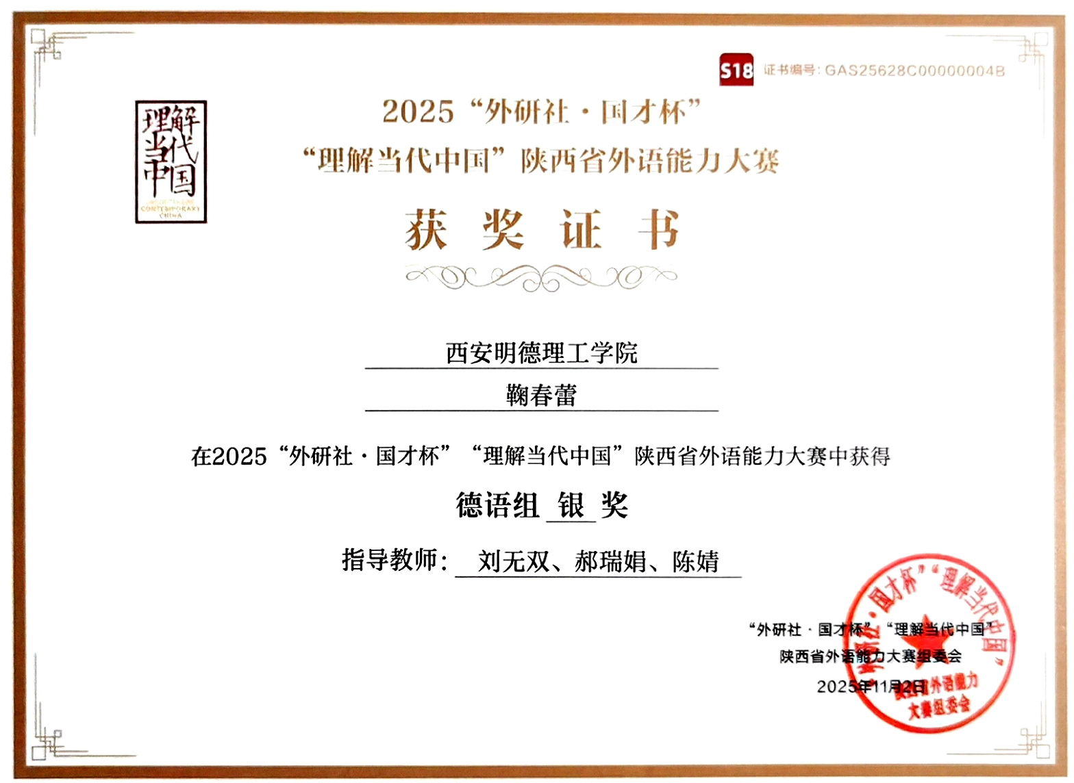 西安明德理工学院语言文化传播学院德语专业成立于2008年。作为西安具有德语专业的五大院校之一,我校德语专业师资队伍较为雄厚。该教学团队现8人,其中1名德语外教,其他均为专职教师。4人具有副高及以上职称。本专业培养具有扎实的德语语言基础知识, 能较为熟练地运用德语语言技能,并具有较为熟练的英语运用能力,以及具备较为宽广的知识面, 能在外事、经贸、教育、旅游等部门从事翻译、教学、管理工作的应用型语人才。截止2024年7月已有12届毕业生,共有738名学生毕业并取得文学学士学位。经我院协调与帮助目前先后已经有超过120位学生去往德国。学生可以通过我院出的“暑期夏令营”或者为期半年“赴德带薪实习”或者“为期一年的出国交流”的形式前往德国进行实践学习。